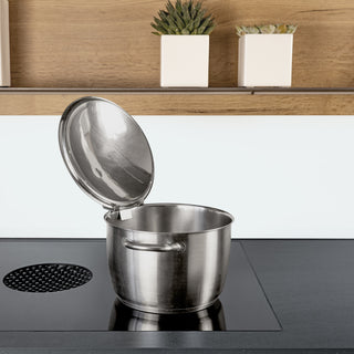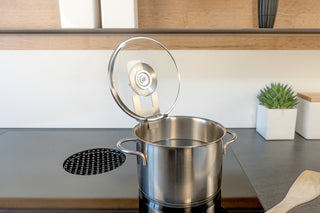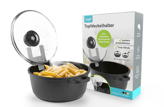 topfi besitzt eine kompakte Größe und lässt sich an den meisten Kochtöpfen und Pfannen befestigen.